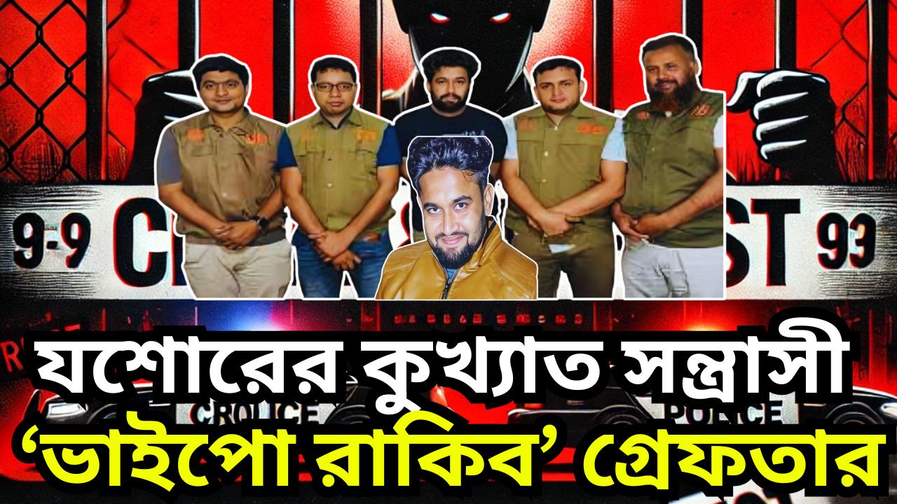 যশোরের চিহ্নিত সন্ত্রাসী ও একাধিক হত্যাকাণ্ডসহ ২৪টি মামলার আসামি কাজী রাকিব ওরফে ‘ভাইপো রাকিব’কে গ্রেফতার করেছে জেলা পুলিশের গোয়েন্দা শাখা (ডিবি)। বৃহস্পতিবার (২০ মার্চ) রাতে শহরের বেজপাড়া এলাকা থেকে তাকে আটক করা হয়।