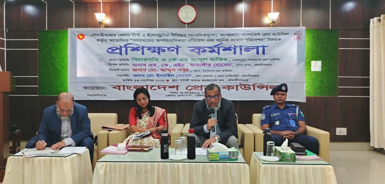 গণমাধ্যমের অপসাংবাদিকতা প্রতিরোধ এবং বস্তুনিষ্ঠ সংবাদ পরিবেশন – এ প্রতিপাদ্যকে সামনে রেখে মৌলভীবাজারে দিনব্যাপী এক প্রশিক্ষণ কর্মশালা অনুষ্ঠিত হয়েছে। শনিবার (১৩ সেপ্টেম্বর) সকালে জেলা সার্কিট হাউজ কনফারেন্স রুমে বাংলাদেশ প্রেস কাউন্সিলের উদ্যোগে এবং তথ্য ও সম্প্রচার মন্ত্রণালয় ও জেলা প্রশাসনের সহযোগিতায় এ কর্মশালার আয়োজন করা হয়। কর্মশালায় জেলার বিভিন্ন প্রিন্ট ও ইলেকট্রনিক মিডিয়ার শতাধিক সাংবাদিক অংশগ্রহণ করেন।