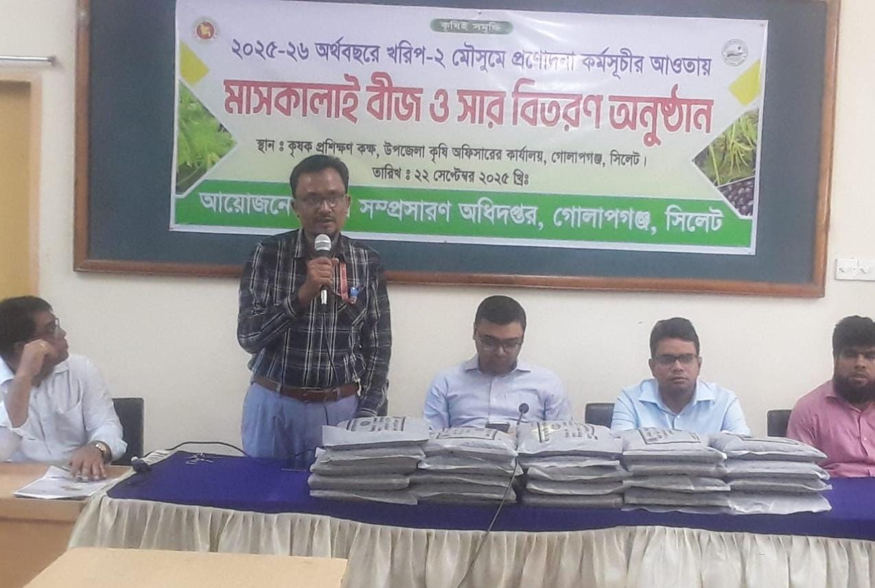 সিলেটের গোলাপগঞ্জ উপজেলায় কৃষকদের মধ্যে মাসকালাই বীজ ও সার বিতরণ