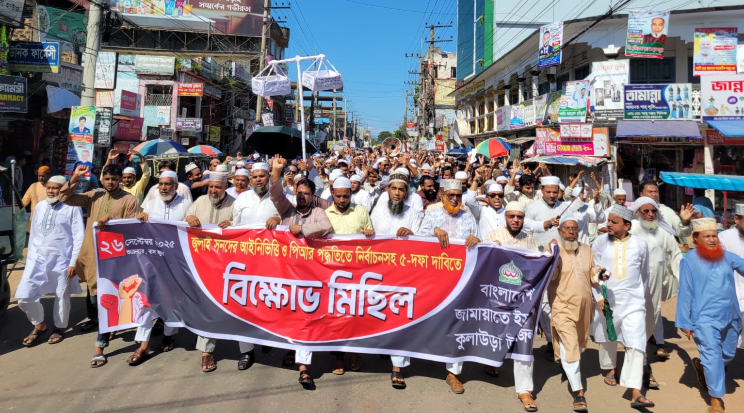 মৌলভীবাজারের কুলাউড়ায় জামায়াতে ইসলামীর উদ্যোগে পিআর পদ্ধতিতে নির্বাচনসহ ৫ দফা দাবিতে বিক্ষোভ মিছিল ও সমাবেশ অনুষ্ঠিত হয়েছে।