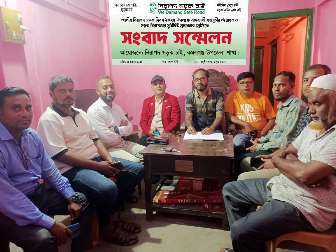মৌলভীবাজারের কমলগঞ্জে জাতীয় নিরাপদ সড়ক দিবস ২০২৫ উপলক্ষে নিরাপদ সড়ক চাই (নিসচা) কমলগঞ্জ উপজেলা শাখার উদ্যোগে মাসব্যাপী কর্মসূচির উদ্বোধন ও সড়ক নিরাপত্তা বিষয়ক সংবাদ সম্মেলন অনুষ্ঠিত হয়েছে।